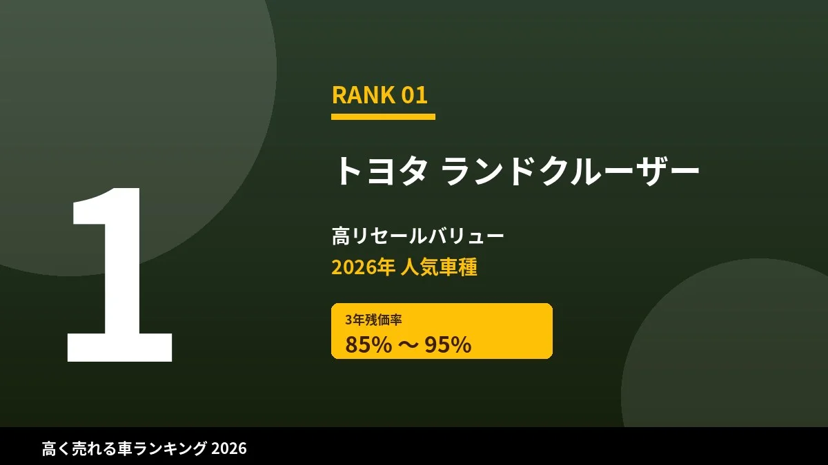 【2026年最新】高く売れる車ランキングTOP10|リセールバリューが落ちない人気車種と高額査定のコツ