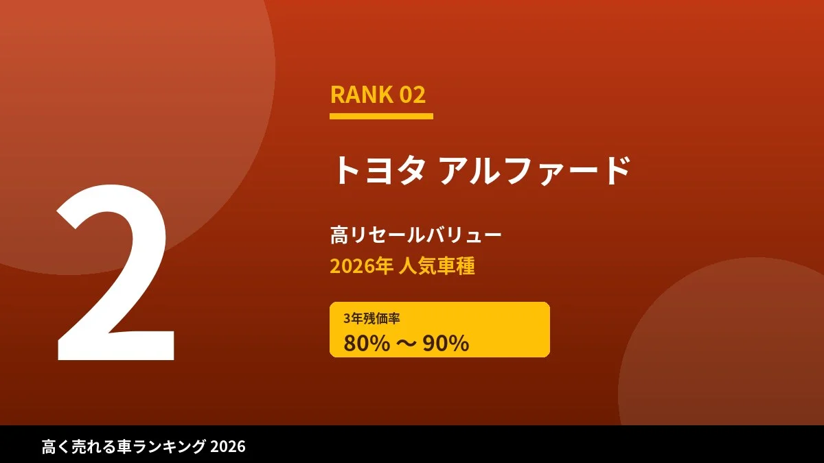 | 2位 | アルファード | ミニバン | 80~90% |