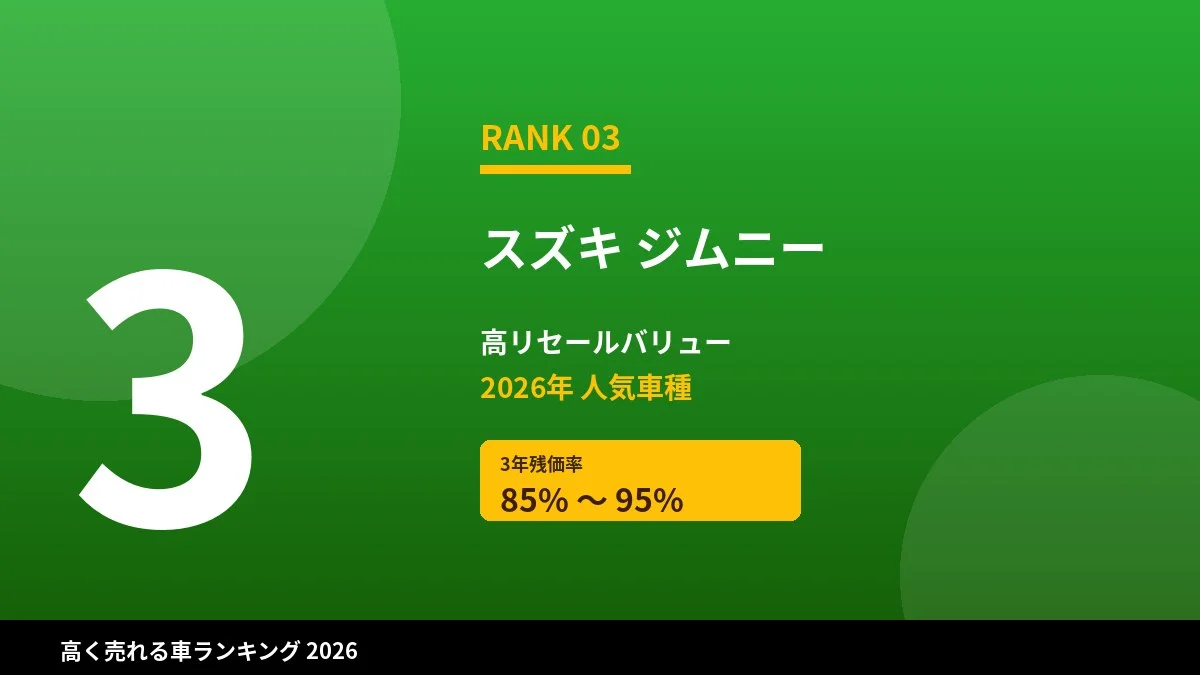 | 3位 | ジムニー | 軽SUV | 85~95% |